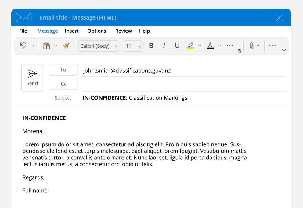 Note: SENSITIVE or RESTRICTED information must by encrypted before being sent via email. The agency must use SEEMail or equivalent encryption service before allowing users to send emails at SENSITIVE or RESTRICTED. It is also good practice to use SEEMail to encrypt IN CONFIDENCE and unclassified information as well. Refer to the NZISM for more information.