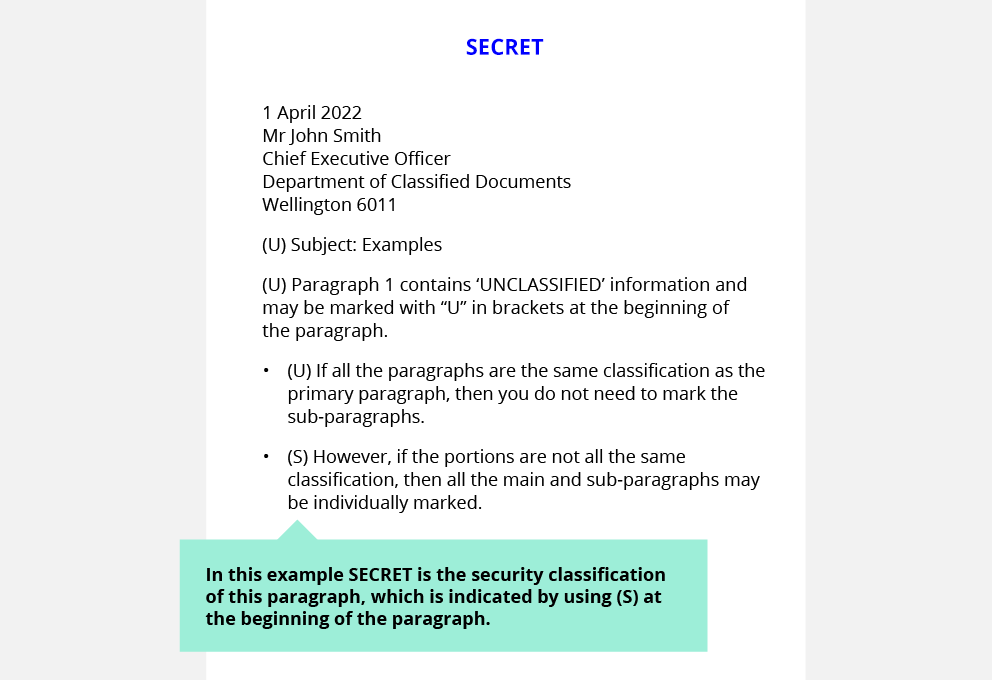 Sometimes paragraphs may need to be marked because they have different or higher security needs. For example, a paragraph in a document might contain secret information. Paragraph markings are called ‘paragraph grading indicators’.