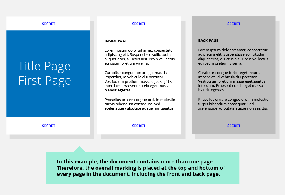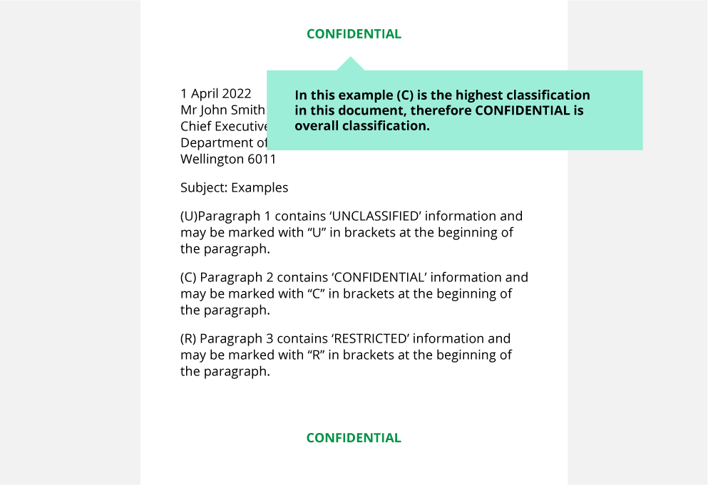 Sometimes paragraphs may need to be marked because they have different or higher security needs. For example, a paragraph in a document might contain secret information. Paragraph markings are called ‘paragraph grading indicators’.