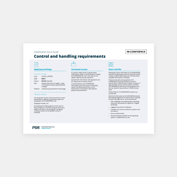 Summarised control and handling requirements for classified New Zealand Government information and assets.